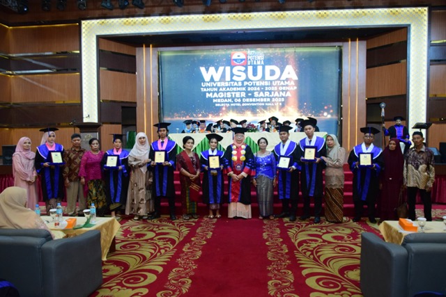 Medan, 6 Desember 2025 – Universitas Potensi Utama (UPU) Medan mengukir sejarah baru dengan mewisuda 620 lulusan terbaiknya dalam acara Wisuda yang berlangsung dengan hikmat dan penuh suka cita di Slecta Ballroom Lantai 5, Medan. Acara yang mengusung tema “Mewujudkan Lulusan yang Kompeten, Berkarakter, dan Berdaya Saing Global” ini dihadiri oleh segenap sivitas akademika, keluarga wisudawan, serta tamu undangan.